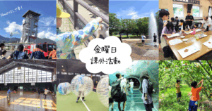 スポッチャ、ボルダリング、プール、川、美術館、動物園、体育館など、色々なところに行ったり、ハンドメイドワークショップなど、様々な体験ができます。