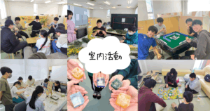 カードゲーム、ボードゲーム、学習、マージャン、公園遊び、音楽練習、お菓子作りなど好きなことをして過ごしています。